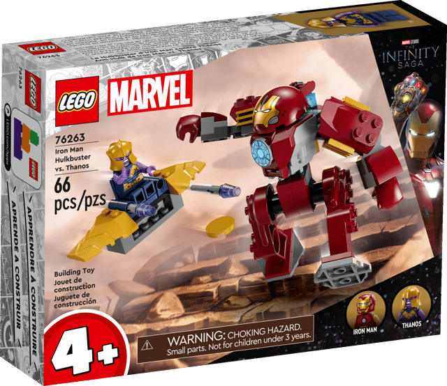 LEGO® Marvel Iron Man Hulkbuster vs. Thanos (76263) features the iconic characters and their awesome technology in a buildable playset created for kids aged 4+.