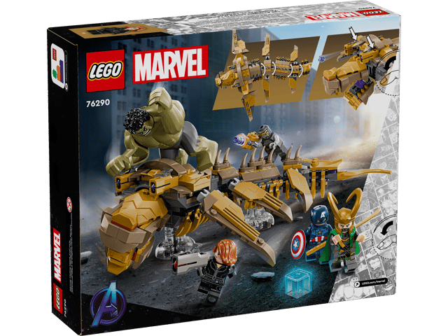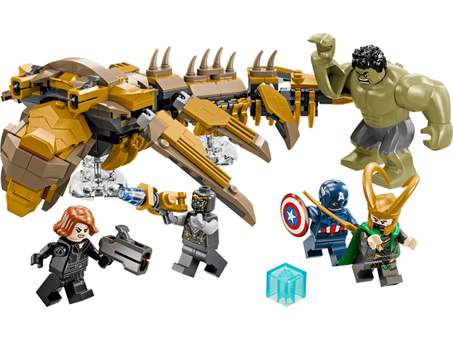 The set includes 4 minifigures – Captain America with his shield, Black Widow holding a stud shooter, Loki with his cape and helmet, and a Chitauri warrior with a laser pistol – plus a large Hulk figure. The buildable Leviathan features 6 moveable fins, an opening mouth, a head that can be turned slightly sideways and 2 stud shooters. The Leviathan comes with transparent stands that enable the minifigures to ’fly’ during play and make the display even more impressive. For added digital fun, the intuitive LEGO Builder app lets kids zoom in, rotate models in 3D, save sets and track progress as they build.
