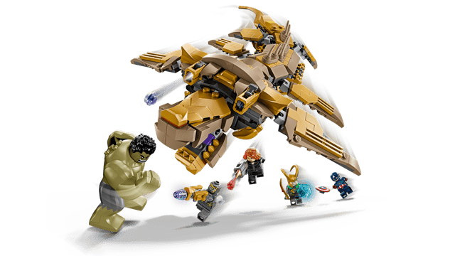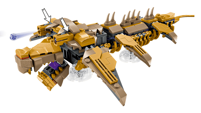 - LEGO® Marvel action model – The buildable Leviathan ’air whale’ features 6 moveable fins, an opening mouth, a head that can be turned slightly sideways, 2 stud shooters and transparent stands
