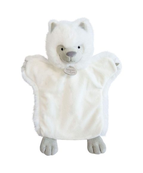 This beautiful white wolf hand puppet is 2-in-1! It can be a soft cuddly toy to soothe baby or a puppet to tell fun stories. Featuring white with soft materials, it's perfect for sharing special moments. This product does not come in a box—consider using a gift bag.