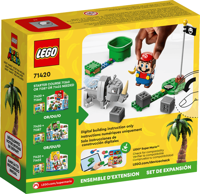 - Stomping, rock-smashing fun – Level up with the LEGO® Super Mario™ Rambi the Rhino Expansion Set (71420), featuring a brick-built Rambi figure and rock elements