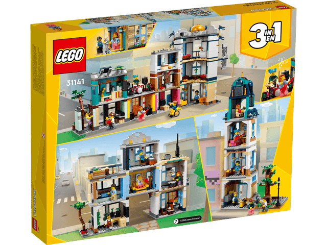- 3in1 toy – Kids can play out exciting city stories with this LEGO® Creator 3in1 Main Street (31141) playset, featuring 3 models in 1: a toy city street, an art deco building and a market street