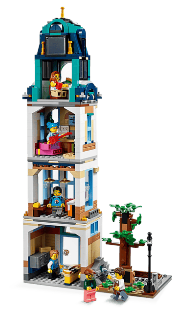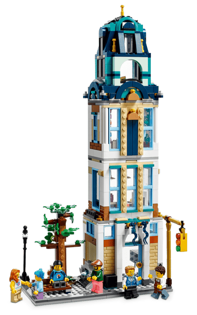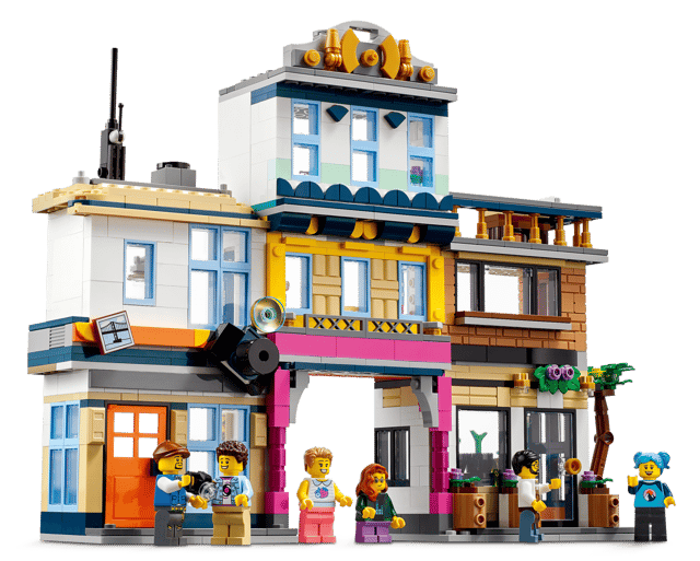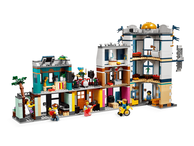 LEGO® fans aged 9+ enjoy a fun trip to the city with this LEGO Creator 3in1 Main Street (31141) building set. It features 4 different buildings: a 3-floor corner hotel, a music store, a record store with a band on the rooftop and a café. Each building connects to form a street scene or can be detached to play with separately.