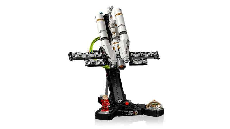 - WHAT’S IN THE BOX – Includes everything you need to build a microscale replica of the Hail Mary spacecraft, a functional display stand, plus a Ryland Grace minifigure and Rocky figure