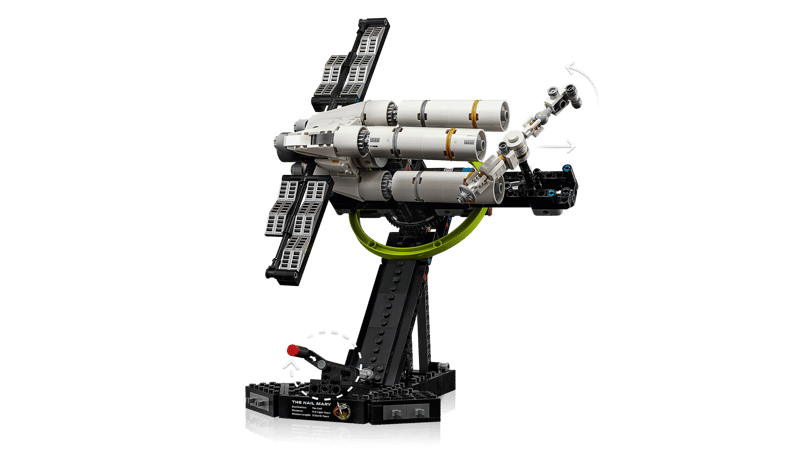 - FUNCTIONAL SPACE MODEL – Turn the crank on the display stand to send the crew module into orbit, simulating the spaceship’s centrifugal gravity system