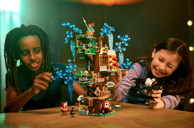 Let kids aged 9+ escape into the home base of the heroes of the LEGO® DREAMZzz™ TV show with the Fantastical Tree House (71461) building set. Based on the magic tree house where the heroes of DREAMZzz convene, the building set features 3 sections: Mrs. Castillo’s kitchen, Izzie and Mateo’s bedroom and a living room, plus a lookout tower and an epic swing. 1 tree house, 2 ways to build The tree house can be built in party mode or defense mode, providing hours of fun and giving kids the opportunity to choose their own adventure. They can build the tree house with cool hangouts or defense stations to protect the heroes and a dreamling from nightmare creatures. Amazing details Cool details include Mrs. Castillo’s toaster, which turns into a bagel blaster, and Mateo’s dream paint bottles, which are scattered around the tree house. All these details are brought to life with minifigures of important characters, including Mrs. Castillo, Izzie, Mateo and the Night Hunter.