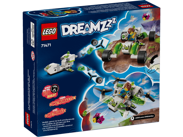 Kids aged 7+ can zoom into the awesome LEGO® DREAMZzz™ world with Mateo’s Off-Road Car toy (71471). Based on the exciting TV show, the set lets kids help hero figures Mateo and Z-Blob retrieve a magical hourglass by building the toy vehicle as a dune buggy or a quadcopter. By offering 2 exciting building options, this action toy encourages kids to unlock their imaginations and choose their own adventures. In buggy mode it’s a robust off-road vehicle with turning wheels, and in quadcopter mode it’s a compact flying machine with overpowered rear engines. The set is brought to life by LEGO DREAMZzz characters, including a detailed Mateo minifigure that comes with a shooter. It also features figures of a Grimspawn and Mateo’s gooey sidekick Z-Blob, so kids can get creative and build their own dream adventure.