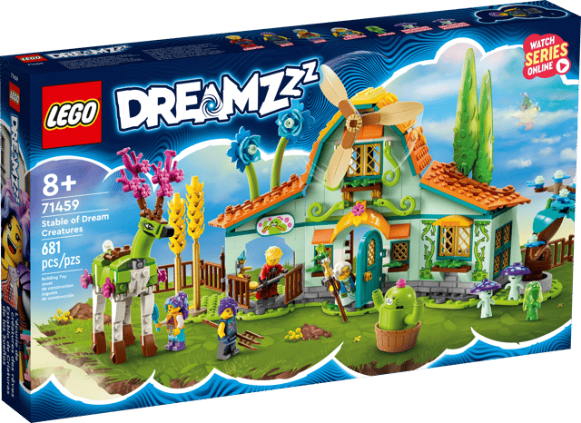 Kids aged 8+ can discover the whimsical Stable of Dream Creatures (71459) with this LEGO® DREAMZzz™ building toy set based on the TV show. Bursting with nature-inspired details and new friends, the set lets kids meet mythical creatures and nurture magical flowers. It’s full of awesome details that will help young imaginations bloom. Kids will delight in discovering the functional windmill, exploring the barn (which includes opening windows and gates) and getting acquainted with mythical new friends such as the 2 dreamlings. 1 set, 2 ways to build The set features 2 building options. Kids can choose to decorate the deer toy as a flying pegasus or a beautiful forest guardian. As well as encouraging creativity, this doubles the time kids can enjoy playing. Fantastic details The deer has an articulated head and legs, making it easy to pose and play, and its antlers can be swapped with flowers from the stable. Detailed minifigures include Izzie, Zoey, Cooper and Mrs. Castillo.