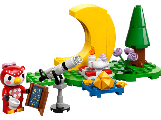 Kids build an outdoor scene inspired by the video game series. They can set up the telescope toy and role-play with a minifigure of Celeste the owl as she consults her astronomy book. Fans of the game will recognize the scene as they wish upon a shooting star then collect the fallen star fragments to decorate the crescent-moon chair.