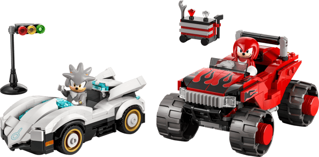Racing adventures await kids ages 8 and up in this LEGO® Sonic the Hedgehog™ Silver’s Car vs. Knuckles’ Monster Truck (77118) video game building toy. Based on the Sonic Racing: CrossWorlds console game, race car and gaming fans can imagine racingaround with Knuckles and the first-ever Silver the Hedgehog minifigures to see who will win. This collectible LEGO gaming merch playset includes 2 Chaos Emeralds in red and white on top of the rolling toolbox, a starting light and tools for imaginative role-play possibilities. This race car and monster truck building toy makes a fun birthday or gamer gift and fulfills a child’s passion for vehicles and action-packed adventures. Add it to other LEGO Sonic the Hedgehog™ building sets in the range(all sold separately) to extend the action play. Plus, kids can build with confidence using the LEGO Builder app, zooming and rotating with 3D instructions while saving and tracking progress – all from the app. Set contains 378 pieces.