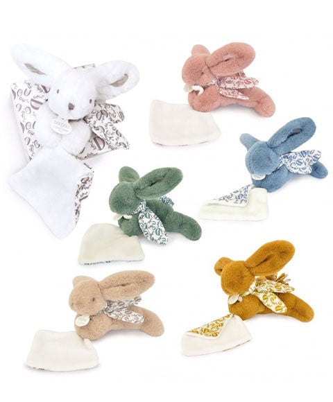 Available in six elegant shades – pink, blue, sage green, ochre, beige, and white – this little plush bunny, with its silky-soft fur, is perfect for cuddles. Ideal for keeping baby company throughout the day and watching over them at night.