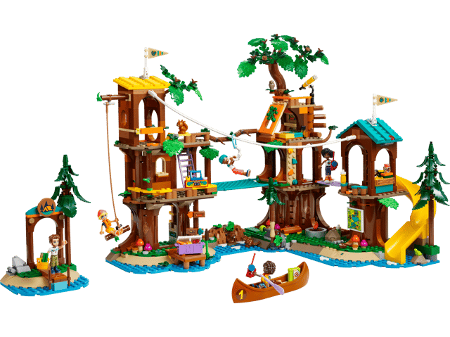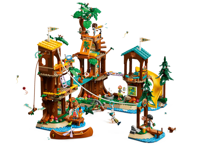 • A camping playset for kids – The LEGO® Friends Adventure Camp Tree House toy for girls and boys aged 8+ comes with 5 mini-dolls, lots of animal figures, a canoe and sports toy accessories